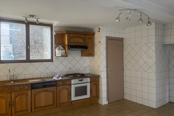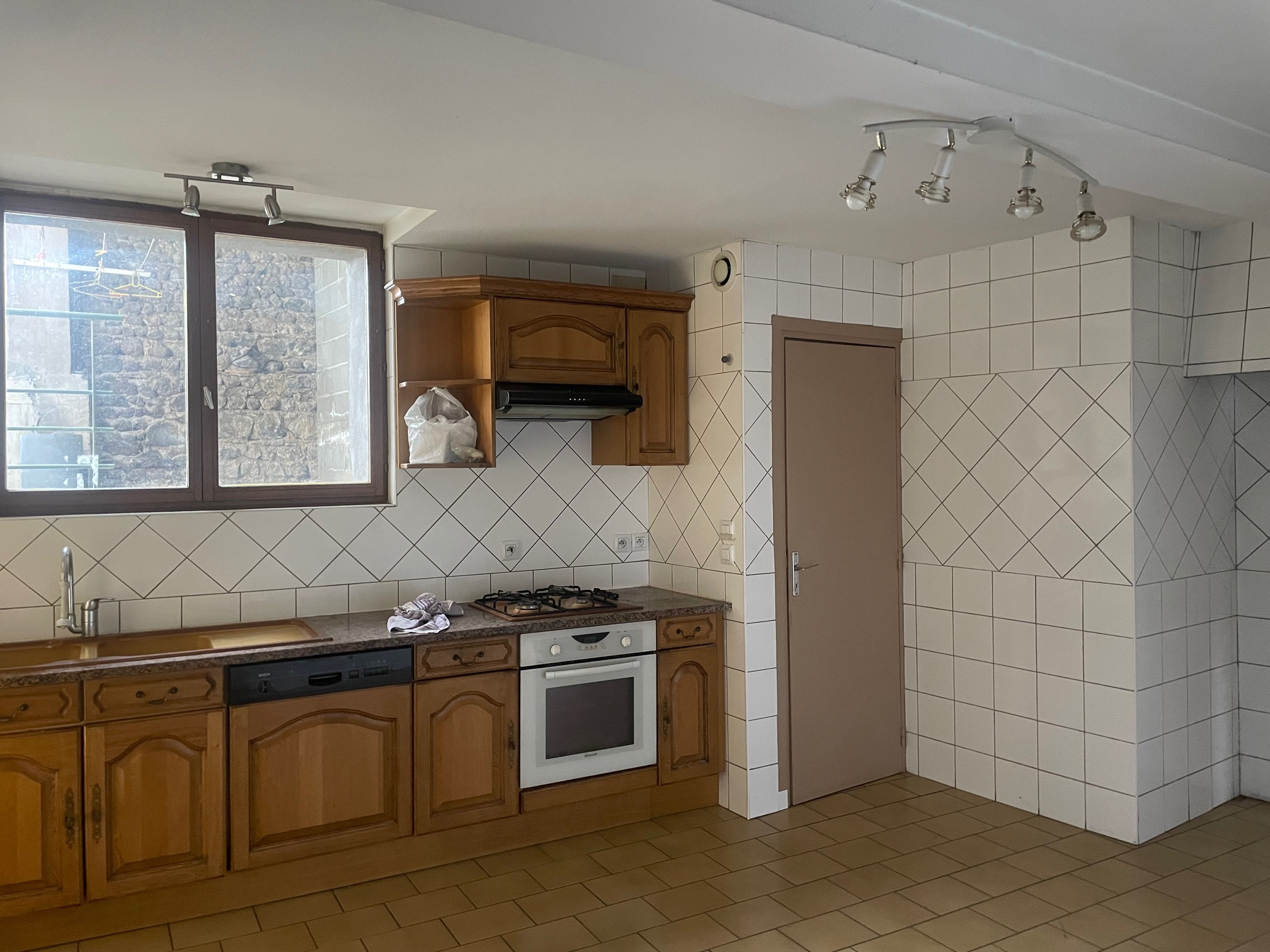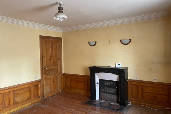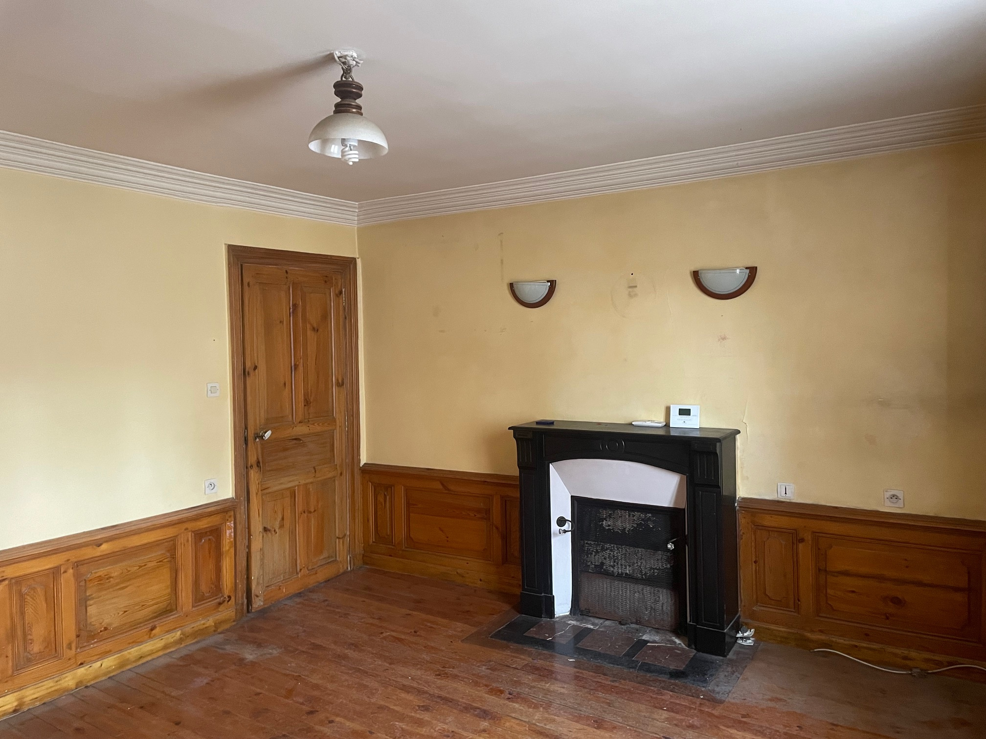 Un T4 : un salon avec cheminée en marbre, cuisine, salle à manger, salle d'eau, WC;