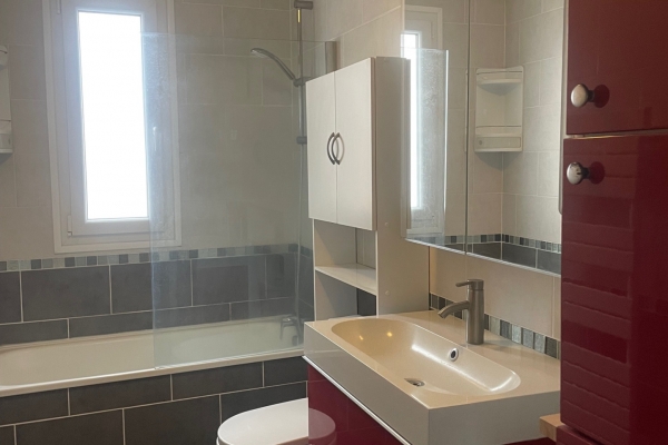 Descriptif: Besoin d'une maison sans travaux, très lumineuse, dans un quartier résidentiel ? Cette maison est pour vous : Cuisine moderne ouverte sur séjour, buanderie, WC, garage au RDC ; à l'étage, 4 chambres, salle de bain, WC, nombreux rangements, grande terrasse à l'arrière, petit jardin avec piscine hors sol ; 2 emplacements de parking goudronné à l'avant.