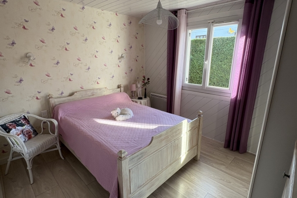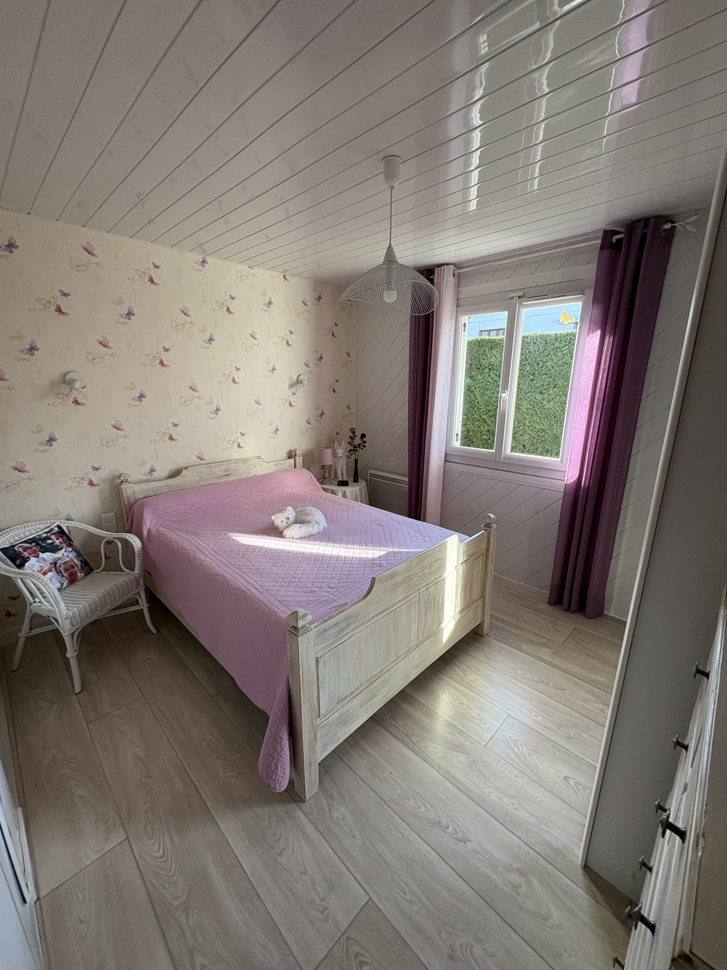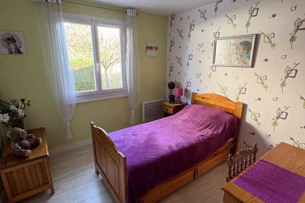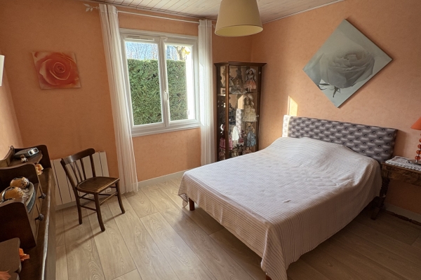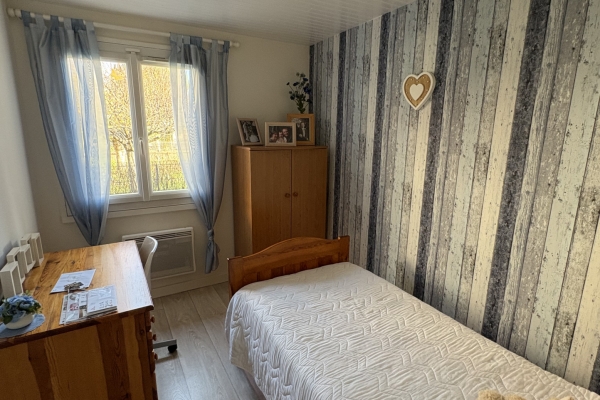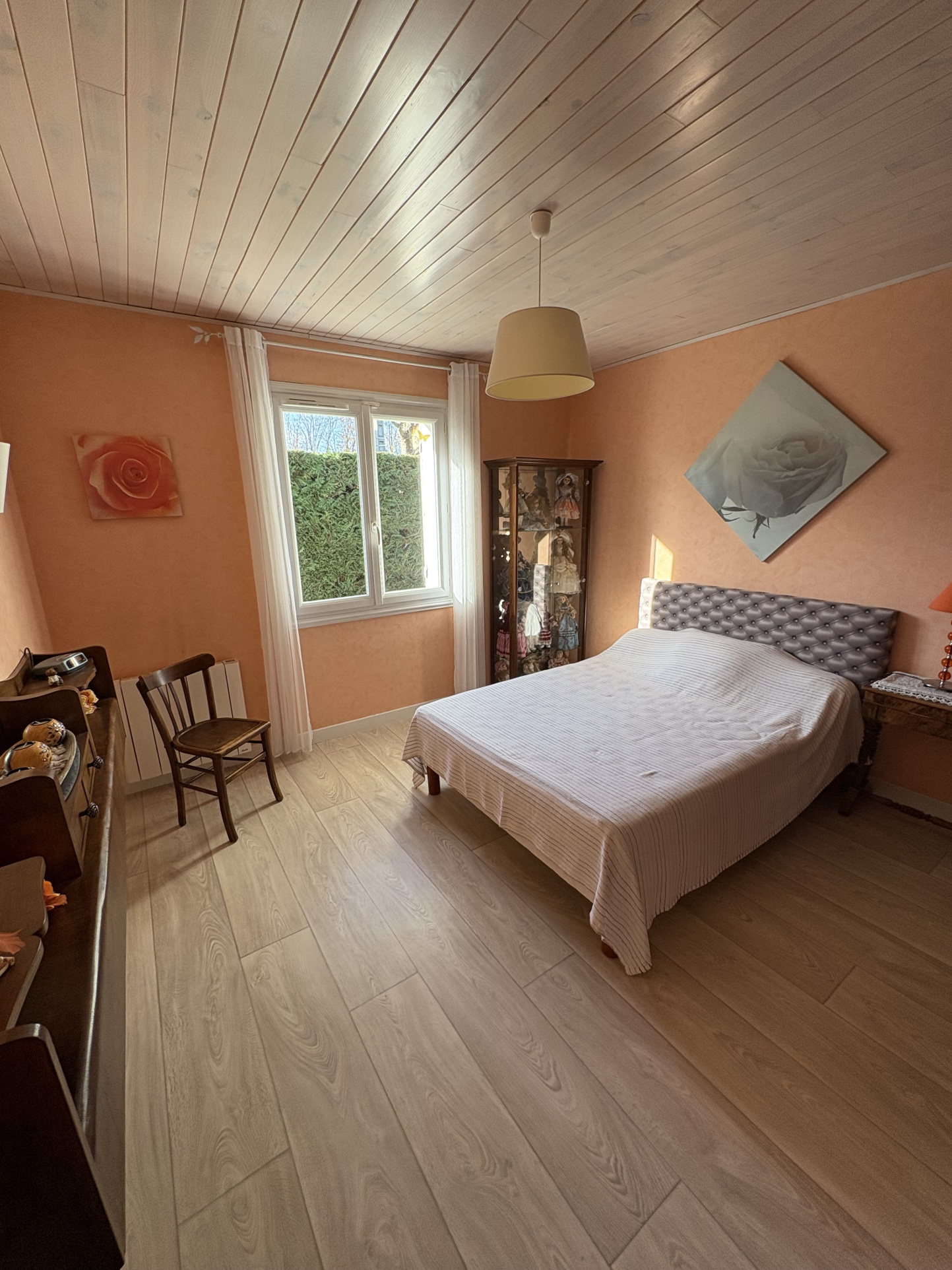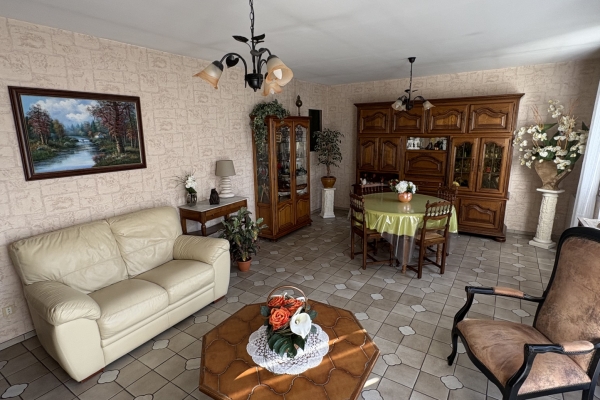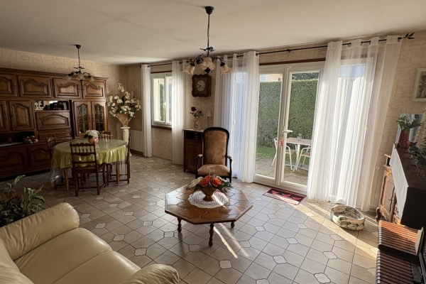La maison, construite dans les années 70, propose un séjour lumineux de 28,5 m2, une cuisine séparée, trois chambres de 14 m2, 12,5 m2 et 9,4 m2 (dont deux avec placard), ainsi qu'un bureau, parfait pour le télétravail. Une salle d'eau, un WC indépendant, une buanderie, une entrée et un couloir central avec rangements.